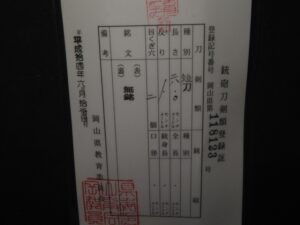 Hand forged samurai blades are registered in the Agency for Cultural Affairs as artwork and The Board of Education (Cultural properties protection Committee); therefore each sword has the registration card, issued by the Board of Education.