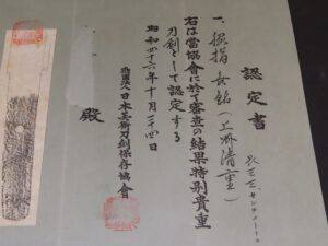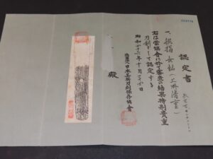 Hand forged samurai blades are registered in the Agency for Cultural Affairs as artwork and The Board of Education (Cultural properties protection Committee); therefore each sword has the registration card, issued by the Board of Education.