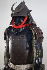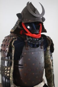 Material : Momonari Kabuto is Iron,coated rusty lacquered Shikoro is iron,
