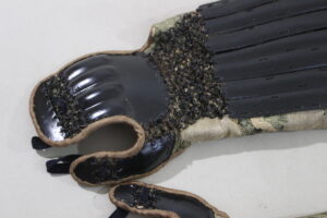 KUSAZURI is leather ,coated black lacquered.