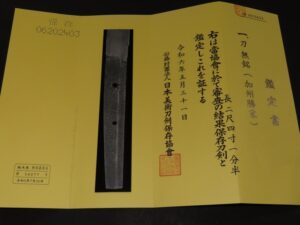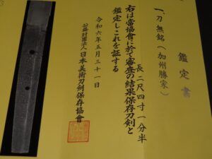 Although it is mumei (unsigned), it is authenticated by the NBTHK as Kasyu Katsuie