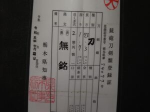Hand forged samurai blades are registered in the Agency for Cultural Affairs as artwork and The Board of Education (Cultural properties protection Committee); therefore each sword has the registration card, issued by the Board of Education.