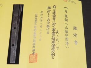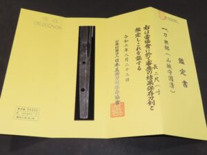 Hand forged samurai blades are registered in the Agency for Cultural Affairs as artwork and The Board of Education (Cultural properties protection Committee); therefore each sword has the registration card, issued by the Board of Education.
