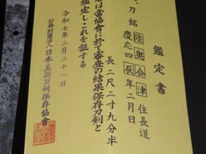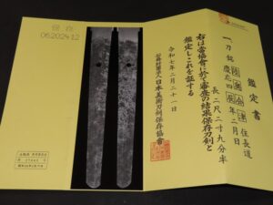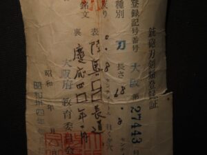 Hand forged samurai blades are registered in the Agency for Cultural Affairs as artwork and The Board of Education (Cultural properties protection Committee); therefore each sword has the registration card, issued by the Board of Education.