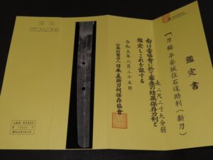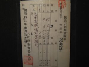 Hand forged samurai blades are registered in the Agency for Cultural Affairs as artwork and The Board of Education (Cultural properties protection Committee); therefore each sword has the registration card, issued by the Board of Education.