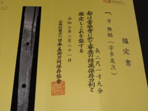 Although it is mumei (unsigned), it is authenticated by the NBTHK as Uda Tomotsugu