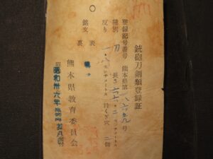 Hand forged samurai blades are registered in the Agency for Cultural Affairs as artwork and The Board of Education (Cultural properties protection Committee); therefore each sword has the registration card, issued by the Board of Education.