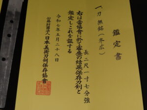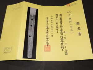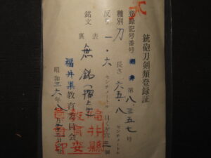 Hand forged samurai blades are registered in the Agency for Cultural Affairs as artwork and The Board of Education (Cultural properties protection Committee); therefore each sword has the registration card, issued by the Board of Education.