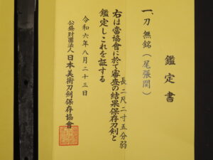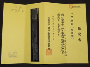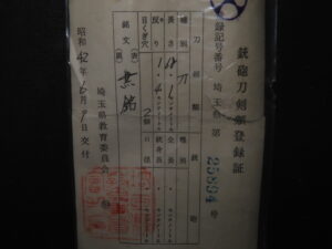 Hand forged samurai blades are registered in the Agency for Cultural Affairs as artwork and The Board of Education (Cultural properties protection Committee); therefore each sword has the registration card, issued by the Board of Education.