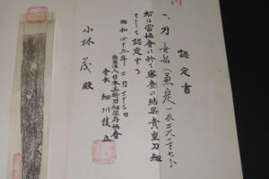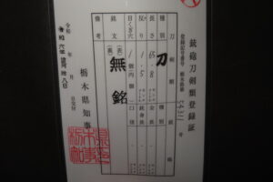 Hand forged samurai blades are registered in the Agency for Cultural Affairs as artwork and The Board of Education (Cultural properties protection Committee); therefore each sword has the registration card, issued by the Board of Education.