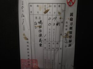 Hand forged samurai blades are registered in the Agency for Cultural Affairs as artwork and The Board of Education (Cultural properties protection Committee); therefore each sword has the registration card, issued by the Board of Education.