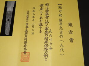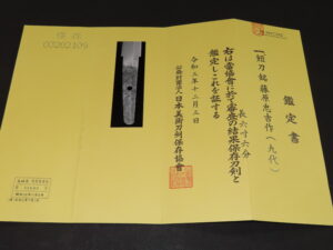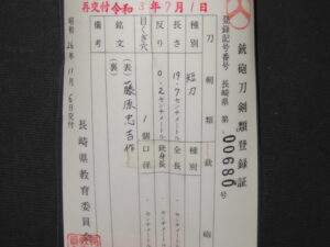Hand forged samurai blades are registered in the Agency for Cultural Affairs as artwork and The Board of Education (Cultural properties protection Committee); therefore each sword has the registration card, issued by the Board of Education.