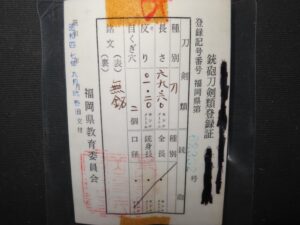 Hand forged samurai blades are registered in the Agency for Cultural Affairs as artwork and The Board of Education (Cultural properties protection Committee); therefore each sword has the registration card, issued by the Board of Education.