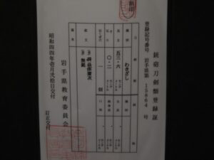 Hand forged samurai blades are registered in the Agency for Cultural Affairs as artwork and The Board of Education (Cultural properties protection Committee); therefore each sword has the registration card, issued by the Board of Education.