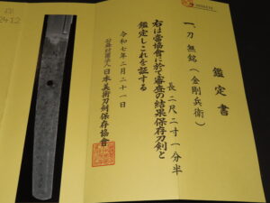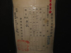 Hand forged samurai blades are registered in the Agency for Cultural Affairs as artwork and The Board of Education (Cultural properties protection Committee); therefore each sword has the registration card, issued by the Board of Education.