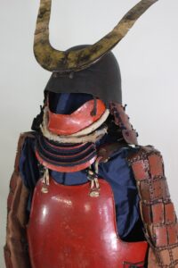 Kusazuri is leather, Tapped gold.