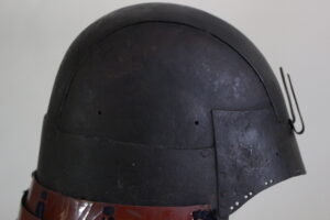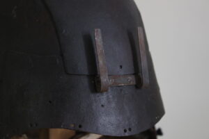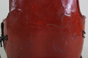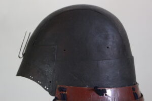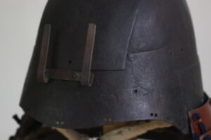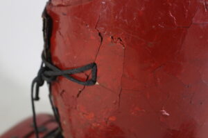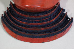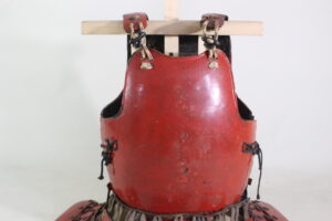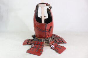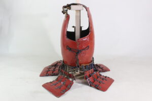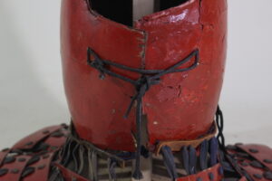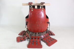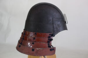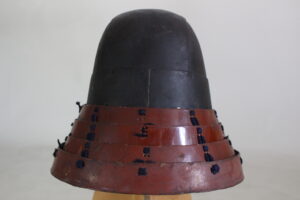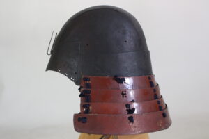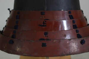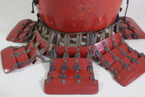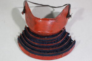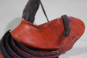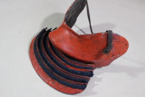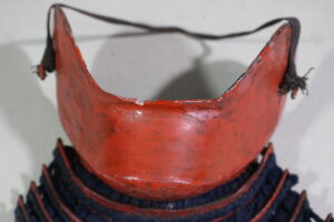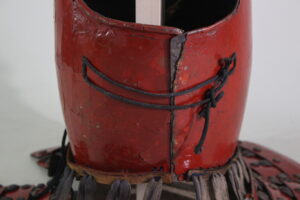 Shikoro is iron ,coated red lacquered.