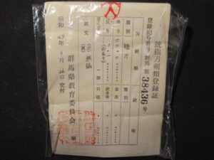 Hand forged samurai blades are registered in the Agency for Cultural Affairs as artwork and The Board of Education (Cultural properties protection Committee); therefore each sword has the registration card, issued by the Board of Education.
