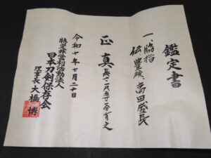 Although it is mumei (unsigned), it is authenticated by the Judgement paper