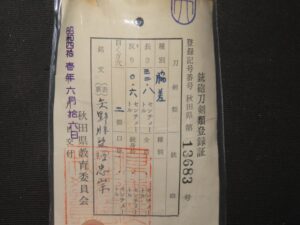 Hand forged samurai blades are registered in the Agency for Cultural Affairs as artwork and The Board of Education (Cultural properties protection Committee); therefore each sword has the registration card, issued by the Board of Education.