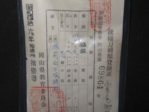Hand forged samurai blades are registered in the Agency for Cultural Affairs as artwork and The Board of Education (Cultural properties protection Committee); therefore each sword has the registration card, issued by the Board of Education.